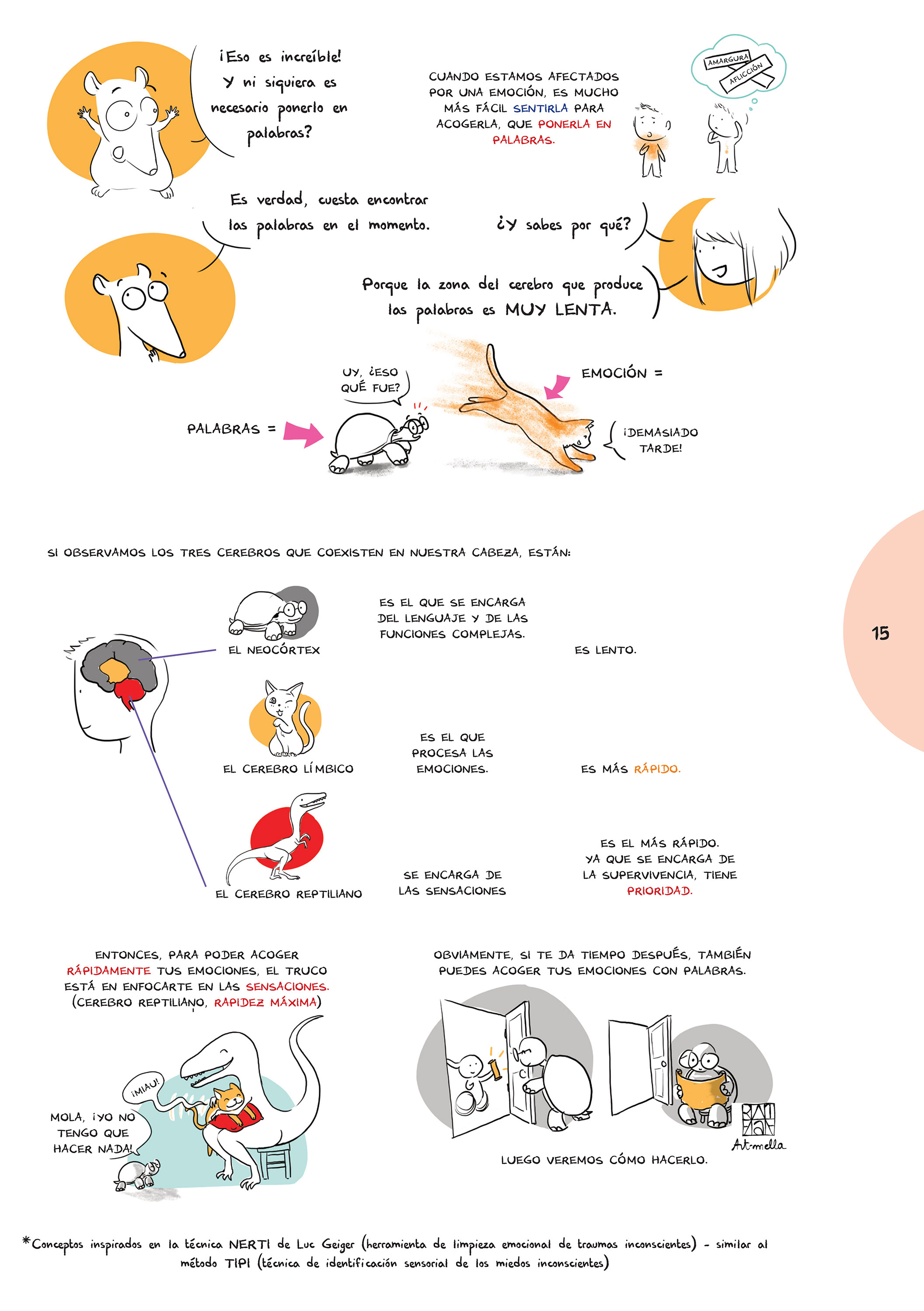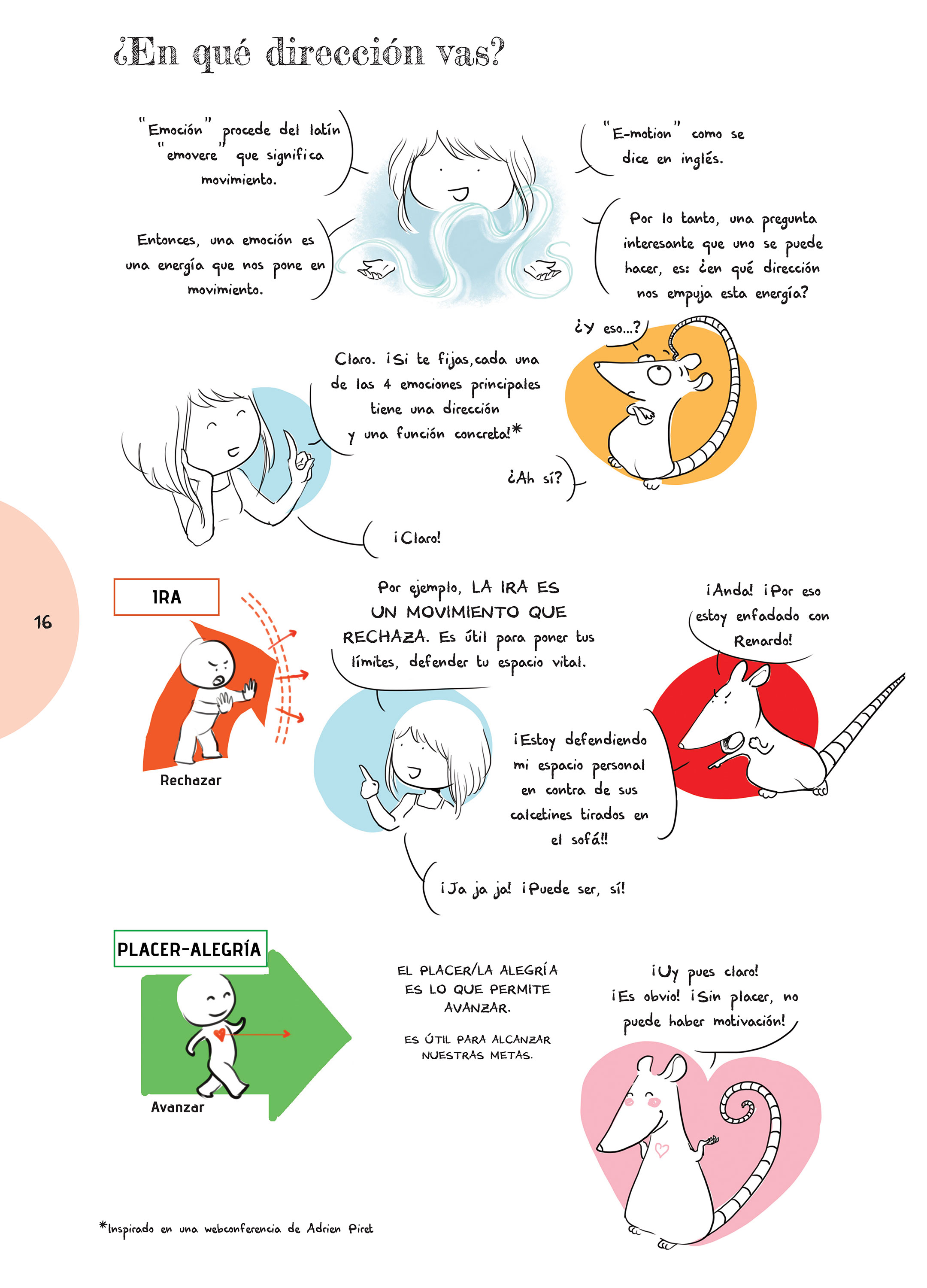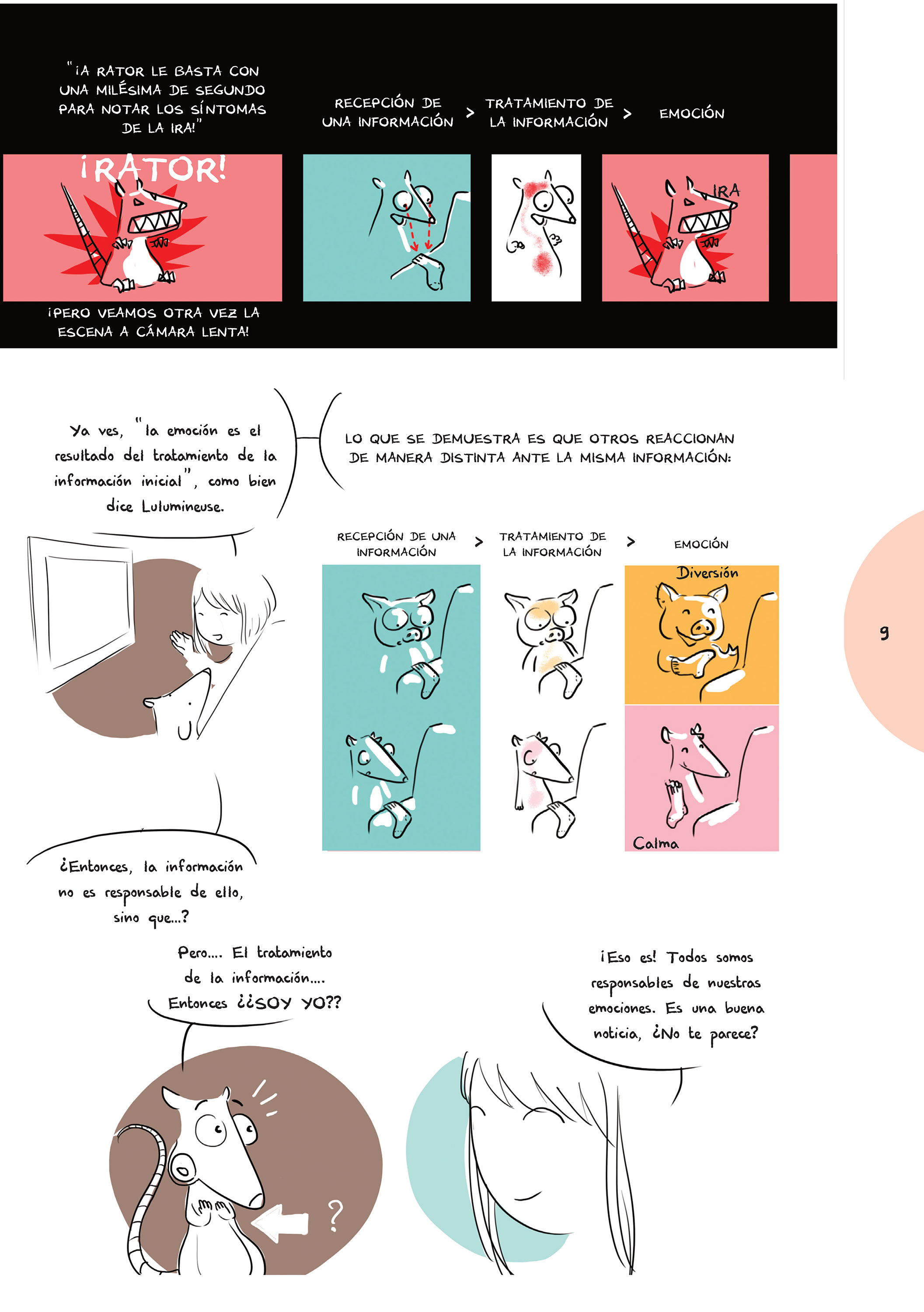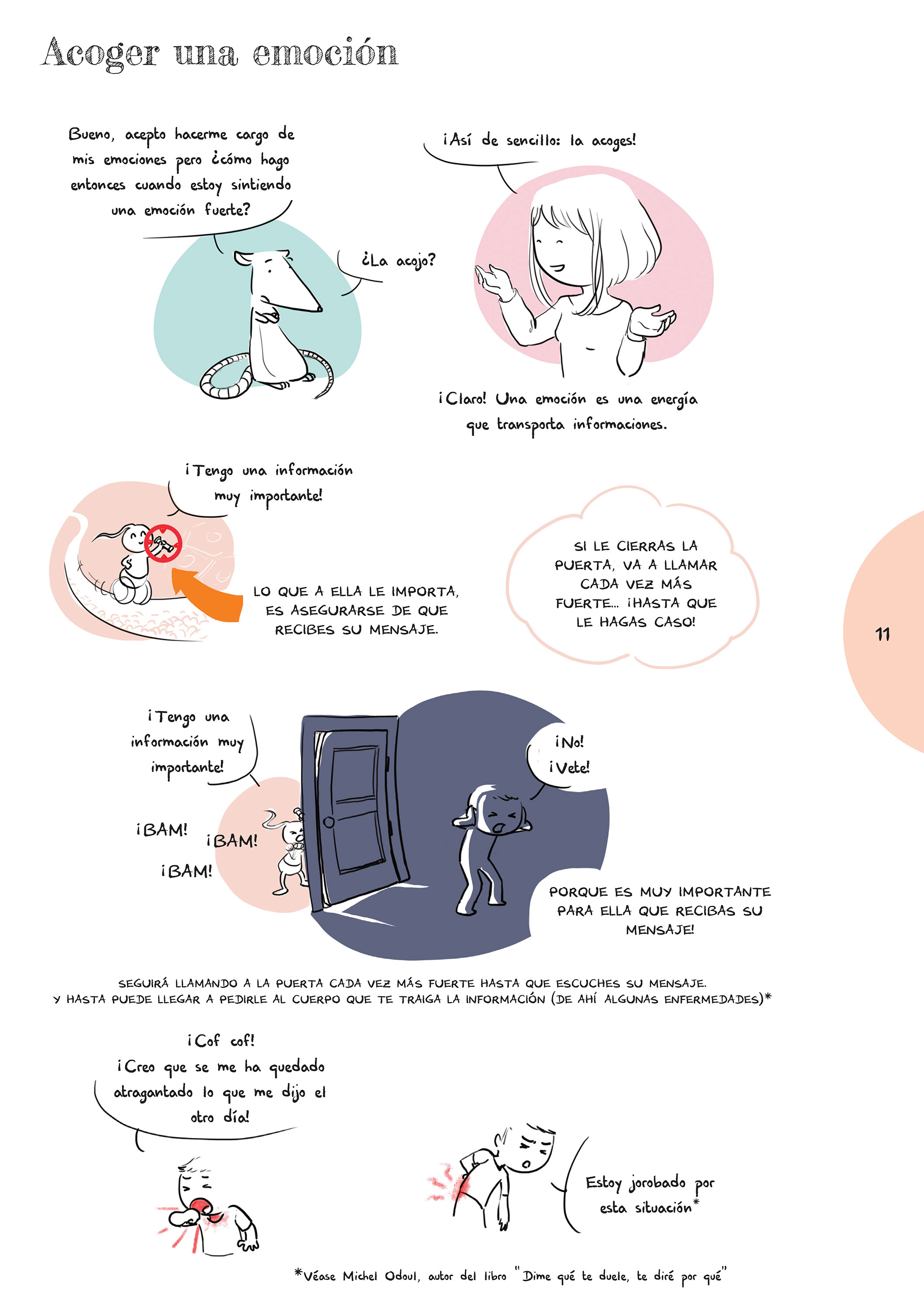 Sólo tengo 10 años pero una noche, cuando no podía dormir a causa de mis miedos (por ejemplo: El Exorcista o muchas otras películas de terror) mi madre me hizo leer tu cómic e inmediatamente comprendí cómo expulsar estos miedos. Me encantó especialmente jugar con la rueda de las emociones al final del libro.