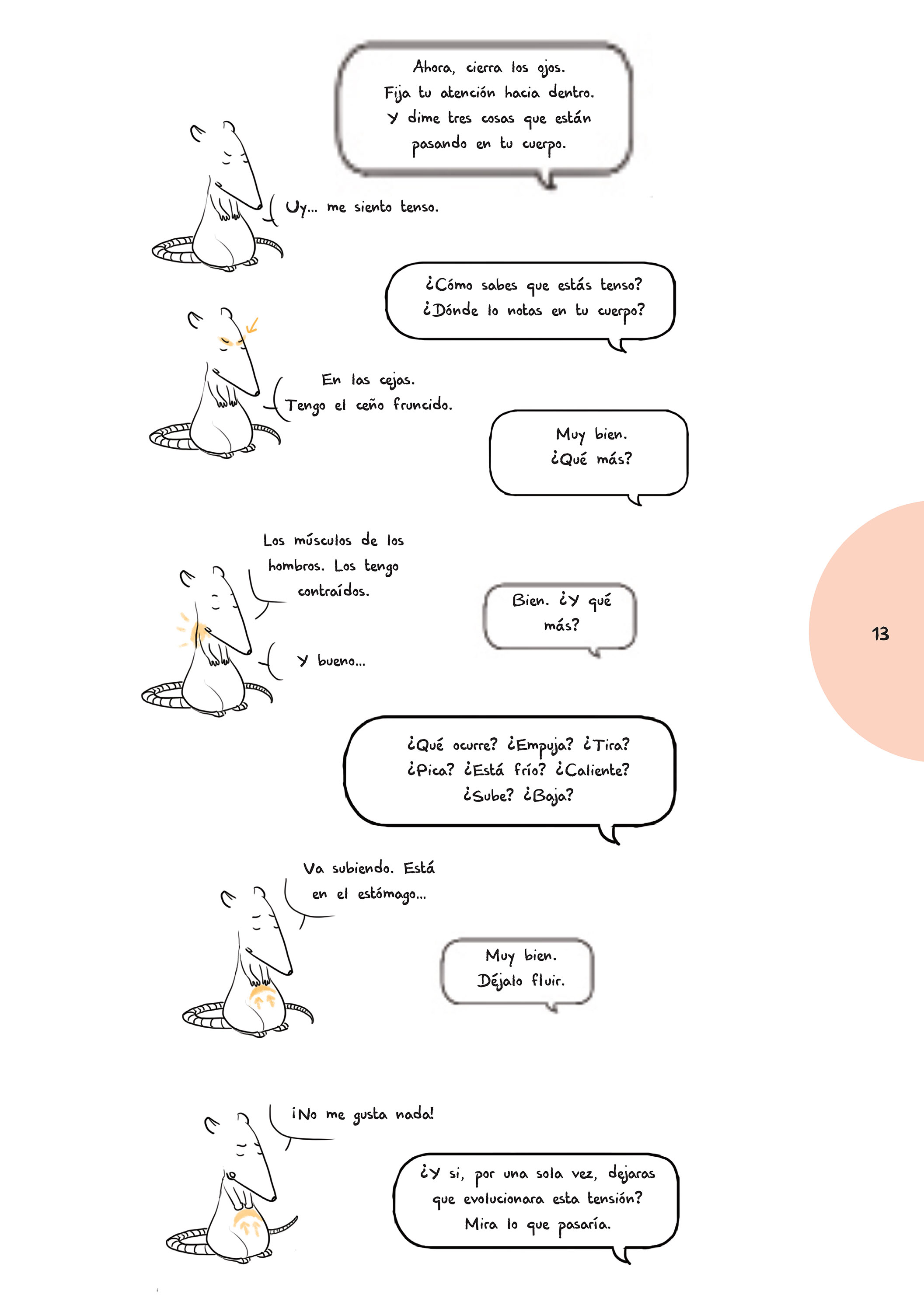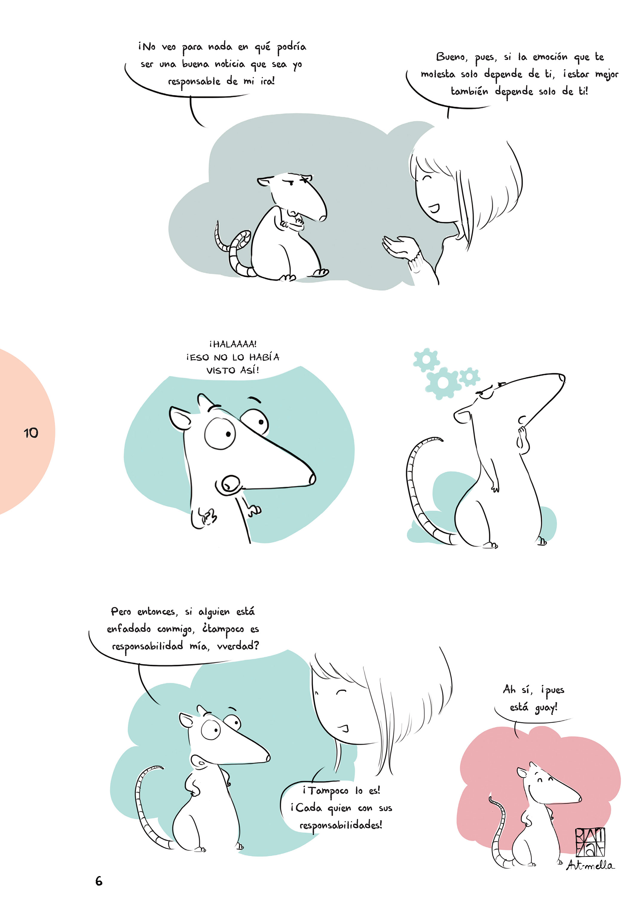 Rator tiene un problemilla con la gestión de sus emociones: no sabe muy bien cómo definirlas y tampoco sabe qué hacer con ellas cuando estallan. Afortunadamente, su nueva amiga Art-mella va a enseñarle a reconocer cada emoción para poder controlarla antes de perder los nervios. Técnicas de respiración y mindfulness para no sentirse desbordado por la ira, la tristeza o el miedo, y juegos prácticos como la brújula de las emociones, las 5 vidas imaginarias o las galletas de plena consciencia van a ayudarle a neutralizar el sufrimiento y anular los pensamientos negativos.